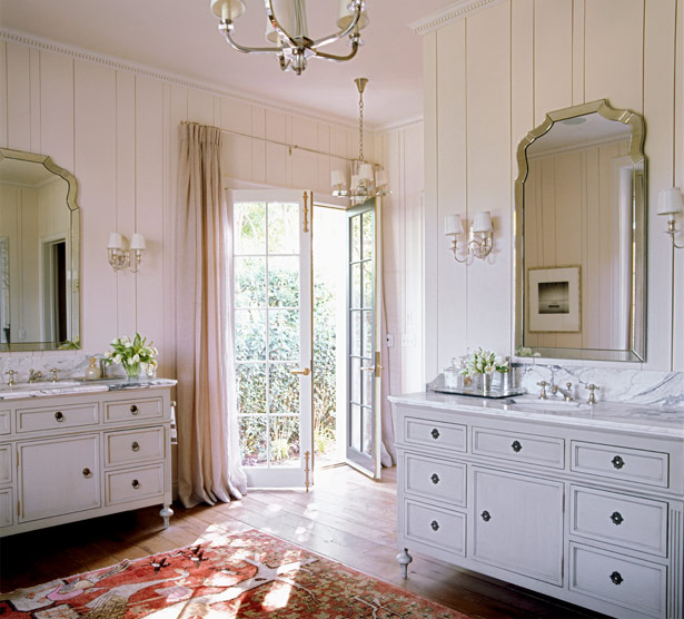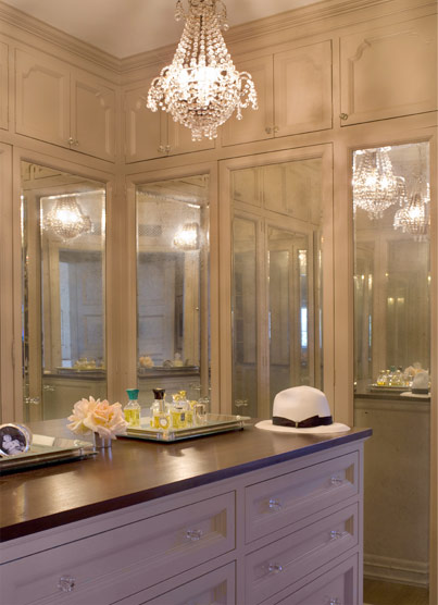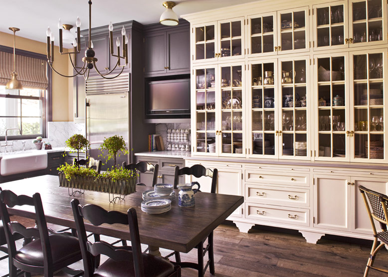 I usually like a pure white kitchen, but i couldn’t resist the glass front cabinets.