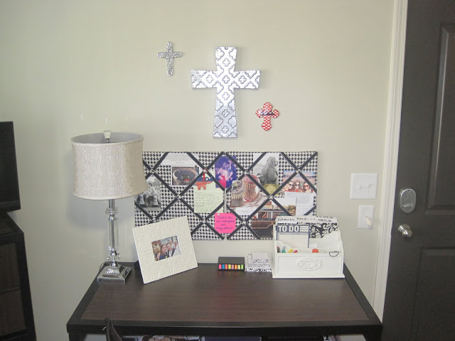 The furniture came with our brand spankin’ new apartment which was quite helpful, but not quite my design style. I felt an explanation was necessary for this less fabulous desk, but I just followed Tim Gunn’s advice “make it work.” SO I did.